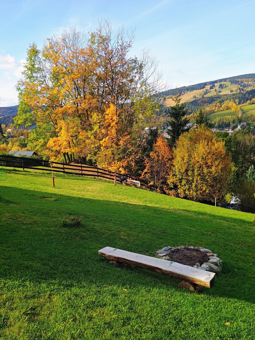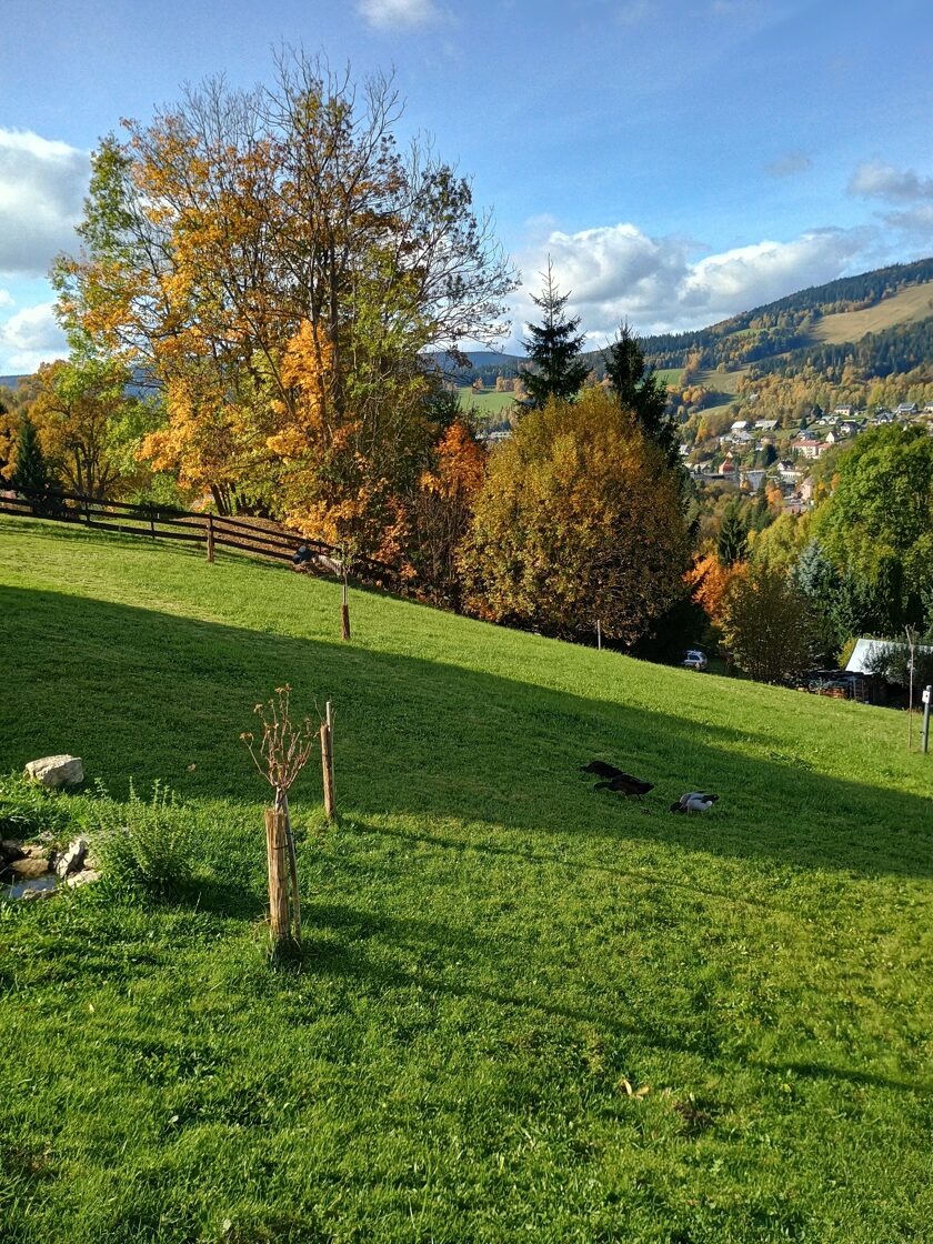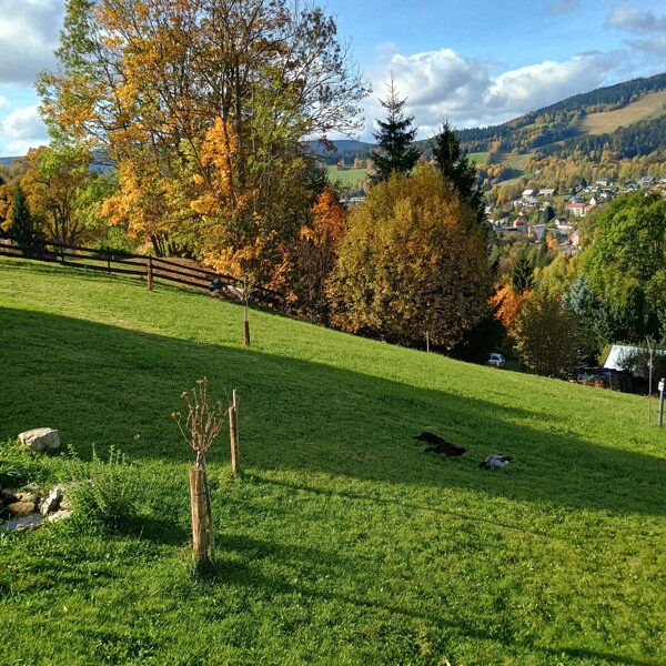 Nasz chalet znajduje się w spokojnej części Rokytnic nad Jizerou, otoczony górską łąką z pięknymi widokami. Doskonała lokalizacja ucieszy miłośników sportów zimowych i letnich, pieszych wędrówek, jazdy na rowerze oraz relaksu. W okolicy można wybrać się na malownicze punkty widokowe Strážník lub skorzystać z pobliskiego ośrodka narciarskiego Nahoru Resort z kolejką linową na Lysą horę. Zimą dostępne są także mniejsze wyciągi, idealne dla początkujących i dzieci. W Rokytnicach znajdziecie szkoły narciarskie, wypożyczalnie nart, rowerów elektrycznych czy hulajnóg, park linowy oraz halę sportową. Przy sprzyjających warunkach dostępne są również przygotowane trasy biegowe.